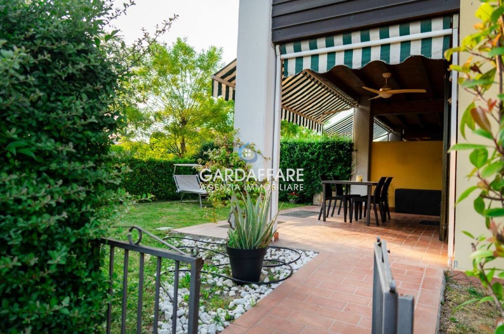 Im Stadtteil Conad di Rivoltella bieten wir eine Dreizimmerwohnung auf zwei Ebenen mit privatem Garten in einer kleinen Wohnanlage mit Swimmingpool an. Die Immobilie verfügt über einen sehr privaten Eingang und ist wie folgt aufgeteilt: Im Erdgeschoss befinden sich ein großes Wohnzimmer mit offener Küche, ein Flur, ein Doppelzimmer, ein Garten auf zwei Seiten und ein Badezimmer mit Fenster. Über eine bequeme Innentreppe gelangen wir in das sehr helle Untergeschoss, wo sich das zweite Doppelzimmer mit Fenstertür und das zweite Badezimmer mit Fenster befinden. Das Untergeschoss ist direkt mit der Einzelgarage verbunden. Zur Ausstattung gehören eine unabhängige Heizung auf beiden Etagen, Klimaanlage, Safe, Alarmanlage und unabhängige Wasserversorgung. Geringe Gemeinschaftsgebühren.