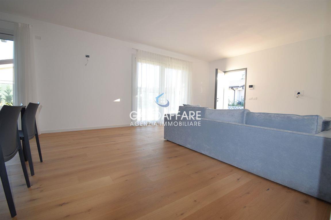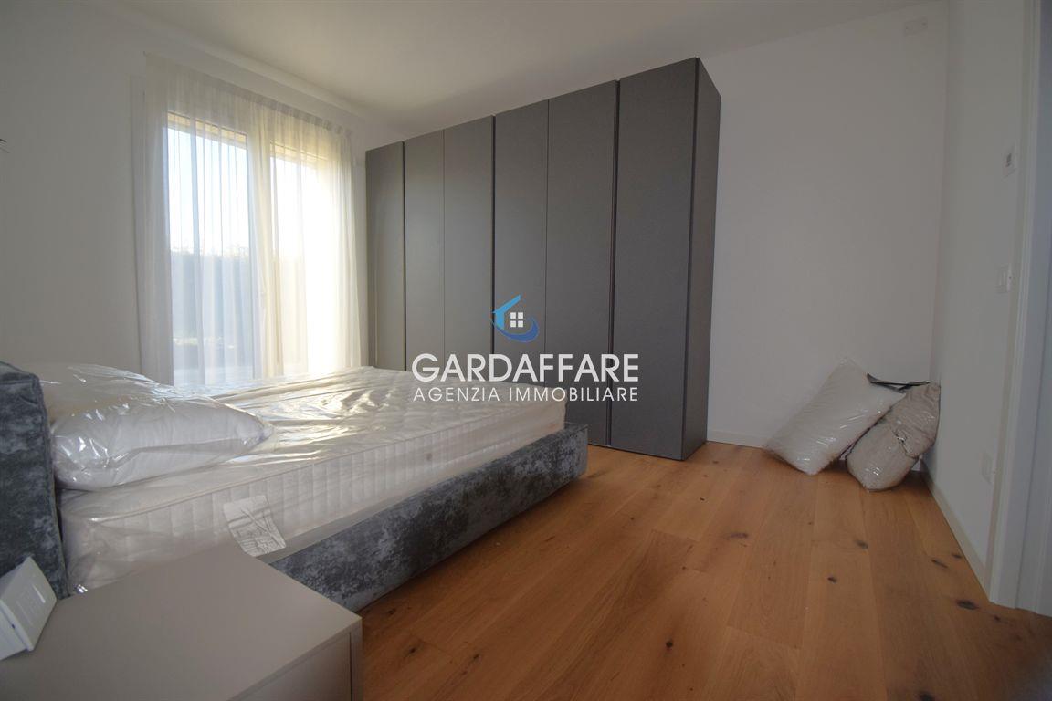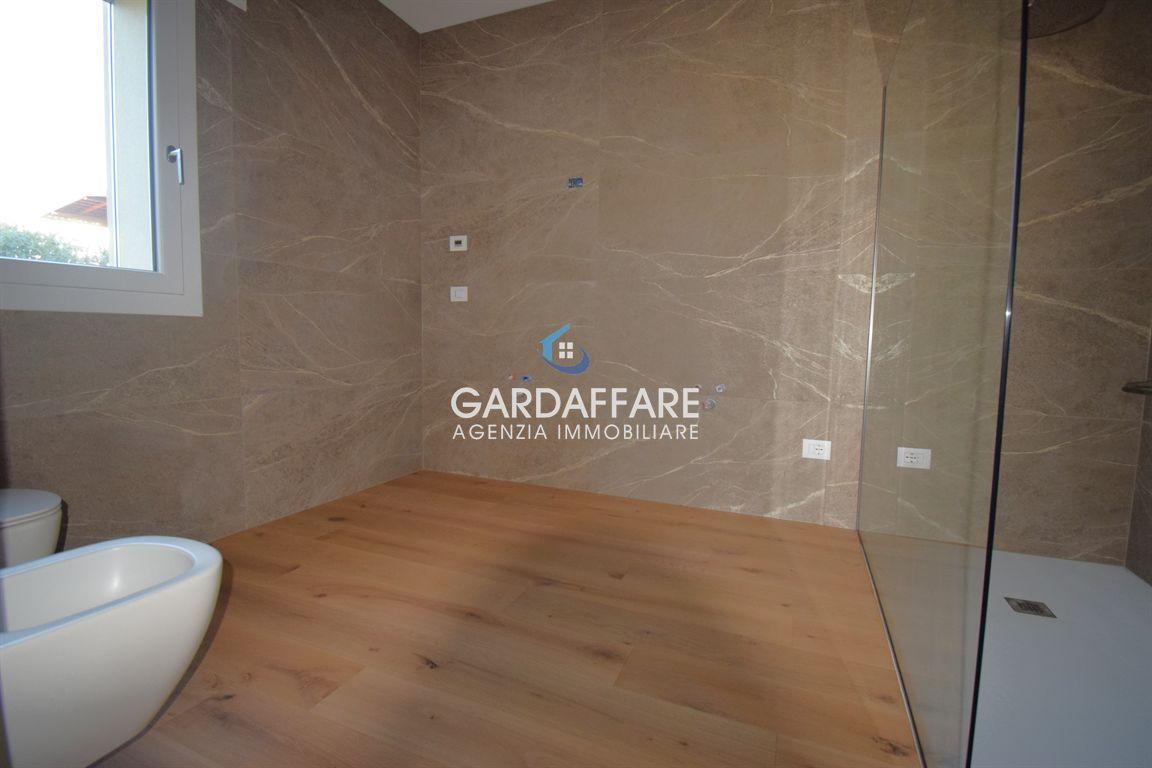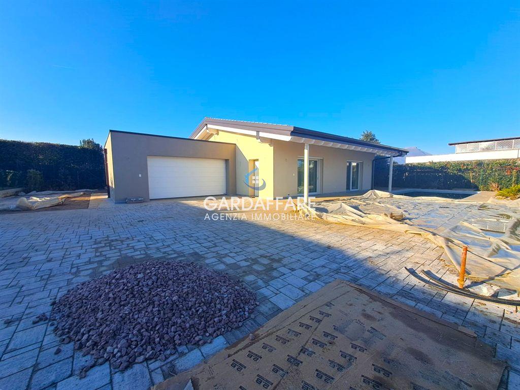 MANERBA LAGO GARDA In einer strategischen Position, eine kurze Entfernung vom Zentrum und dem See, bieten wir zum Verkauf NEUE EINZELvILLA, die gerade auf einer Etage mit Garten und privatem Pool fertiggestellt wurde. Die Villa besteht aus einem geräumigen und hellen Wohnbereich mit Fenstern, die einen schönen Blick auf den umliegenden Garten und den privaten Pool bieten, drei geräumigen Schlafzimmern, zwei eleganten Bädern mit feinen Oberflächen, sowie einem separaten Waschraum. Doppelgarage mit elektrischem Sektionaltor und ausreichend Platz, um zwei Autos bequem zu parken.
