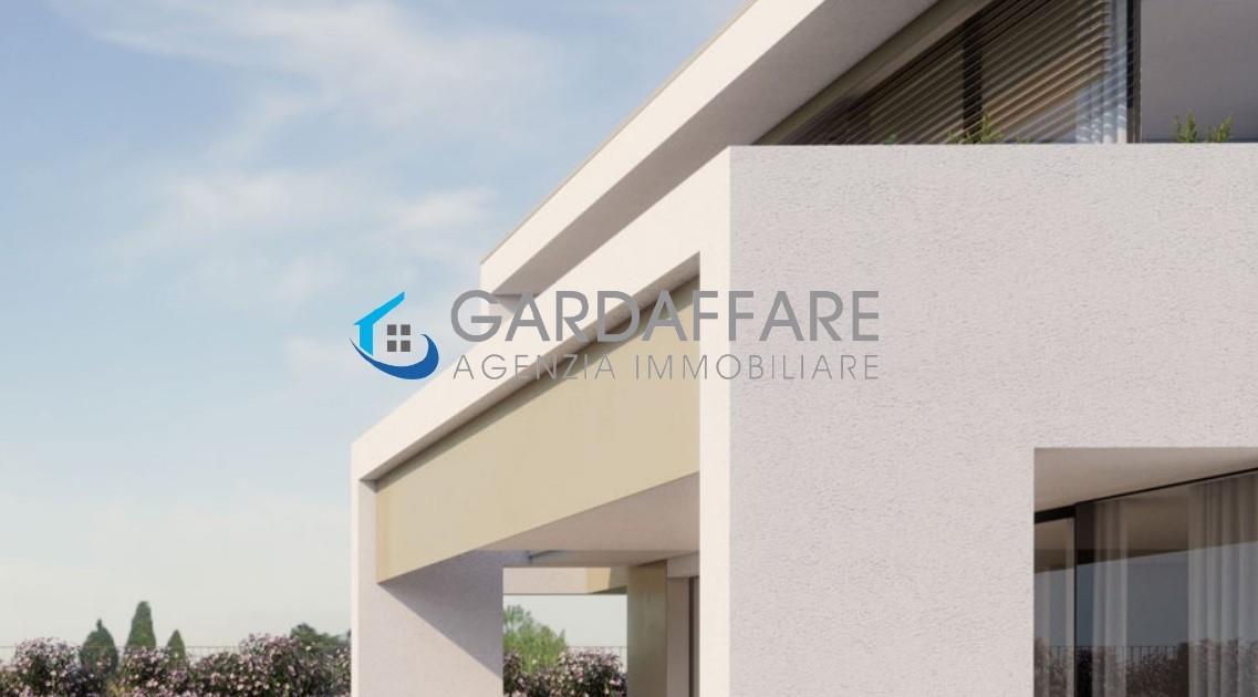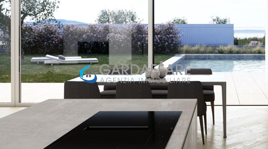 Part of a brand-new and exclusive complex of villas only 200m from the lake, VILLA ACACIA stands on a plot of about 680sqm. The villa consists of a 95sqm ground floor with large living room with dining area, open kitchen with central island, pantry, bathroom and a 97sqm first floor with three bedrooms and three bathrooms. Large porch on the ground floor and terrace on the first floor of about 40sqm each. Private garden of almost 400sqm and swimming pool connected to the heat pump for water heating. Two private parking spaces. PRICE: Euro 1.515.000. E.C. 'A+'. GARDAFFARE 0365/551096. Ref. 23-51d.