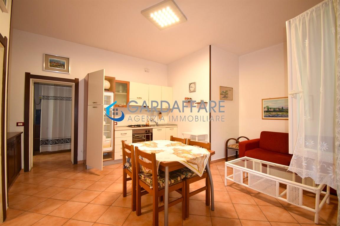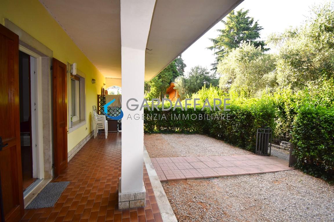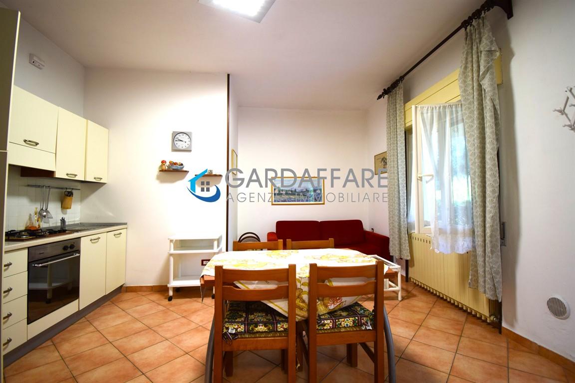Within an idyllic holiday village WITH DIRECT ACCESS TO THE LAKE, we offer for sale a TWO-ROOM APARTMENT WITH PRIVATE GARDEN within a building of only 8 apartments with LOW CONDO FEES. The unit consists of a living area with open kitchen, double bedroom and bathroom. Porch and garden, private parking space.