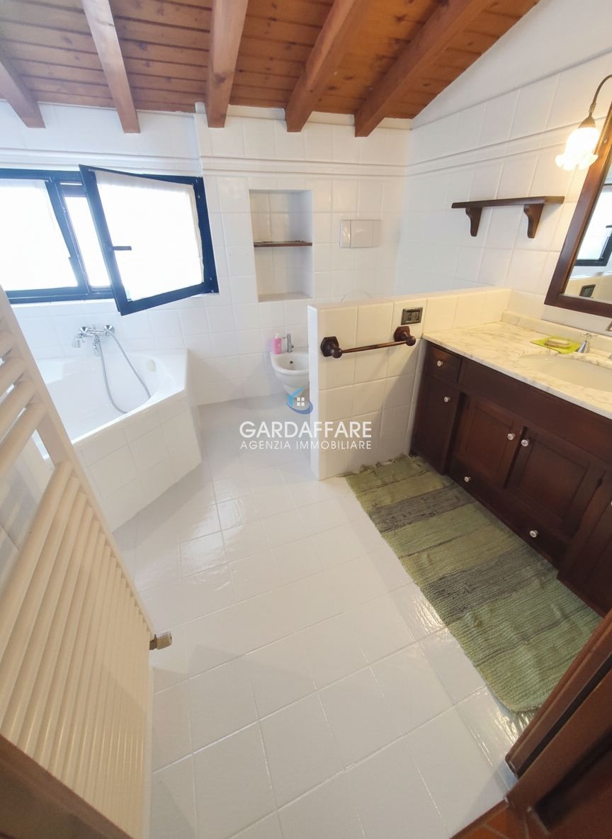 We offer for sale an INDEPENDENT HOUSE OF SQM. 300 located in Montinelle, at the beginning of the beautiful walking trails through the woods and olive groves of the Rocca di Manerba National Park, a 20-minute walk from the beaches of Porto Dusano, Porto Torchio, and Pisenze. The property, with DUAL PEDESTRIAN ACCESS CONVENIENT TO THE HISTORIC CENTER, is composed as follows: