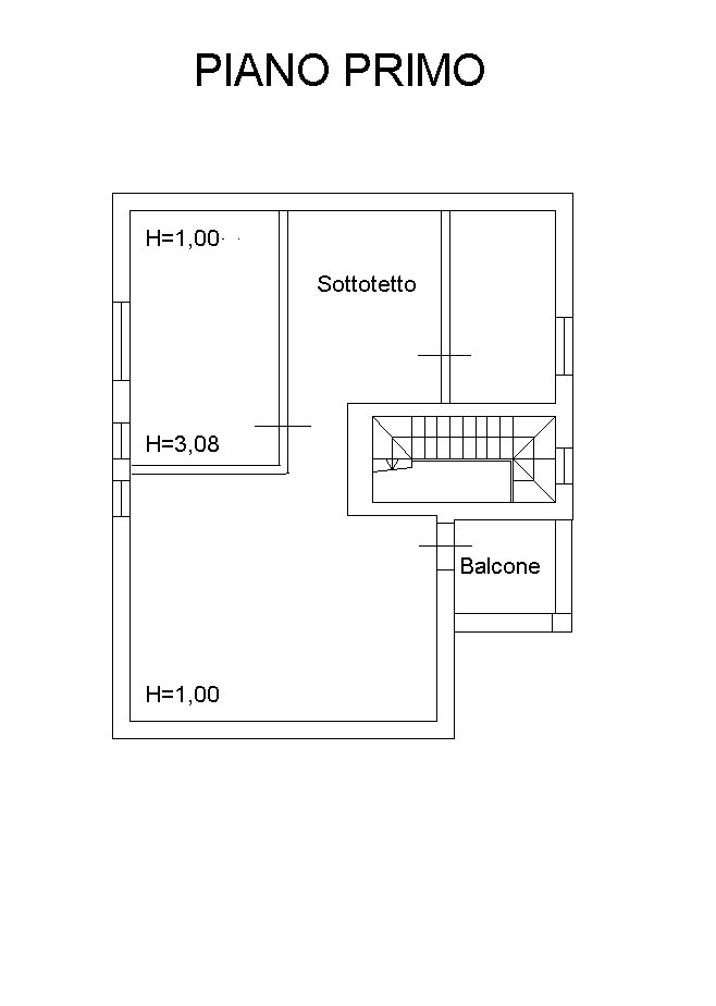 - First floor: three-room apartment with bathroom and balcony.