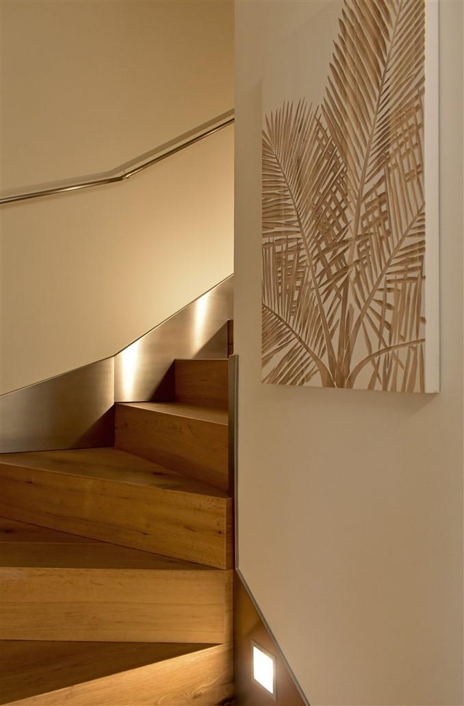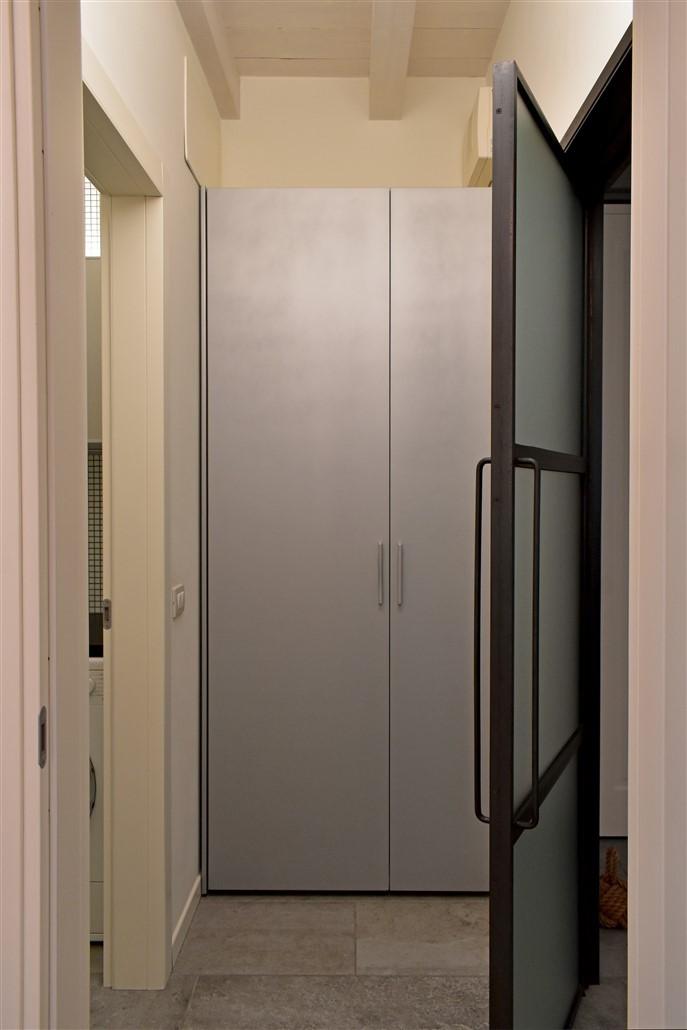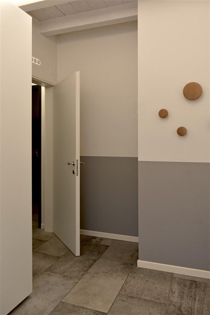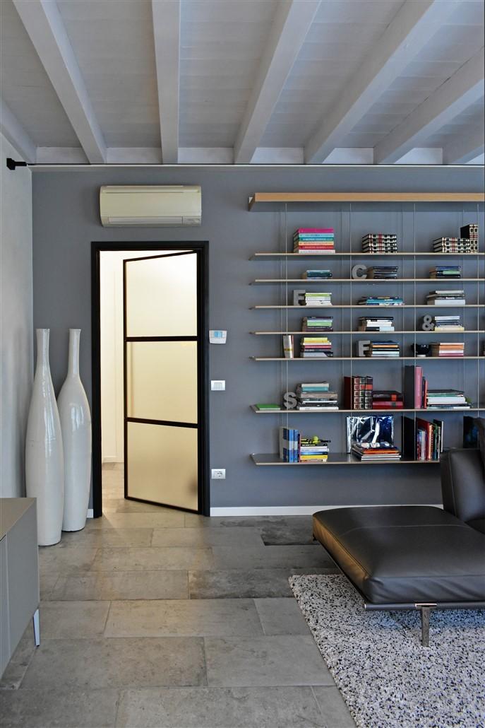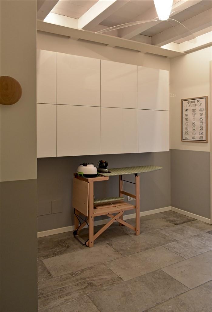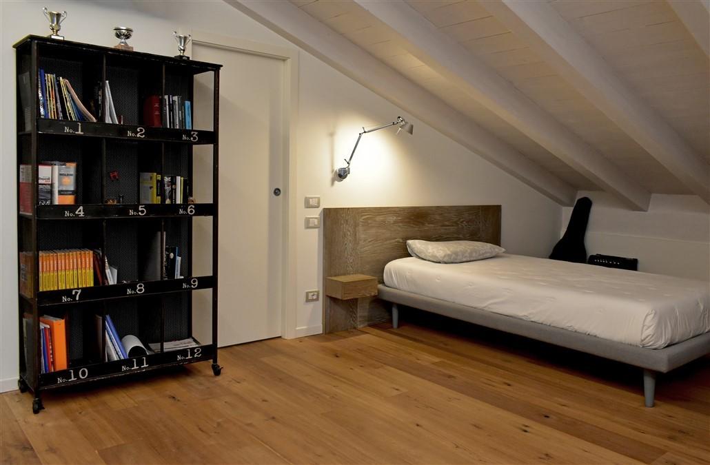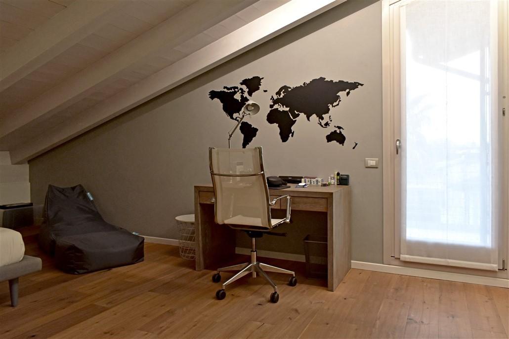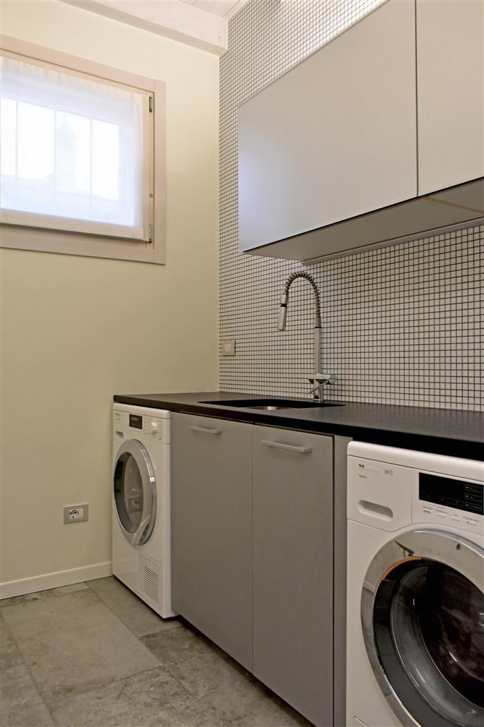 soggiorno molto ampio, sala da pranzo, cucina abitabile, lavanderia con locale stireria o studio, camera ospiti con bagno e una meravigliosa scala di design dalla quale si accede al piano notte mansardato dove troviamo tre grandi camere da letto con altri due bagni e numerosi armadi a muro nei disimpegni.