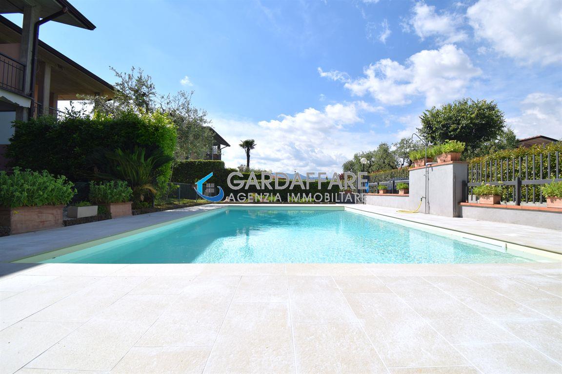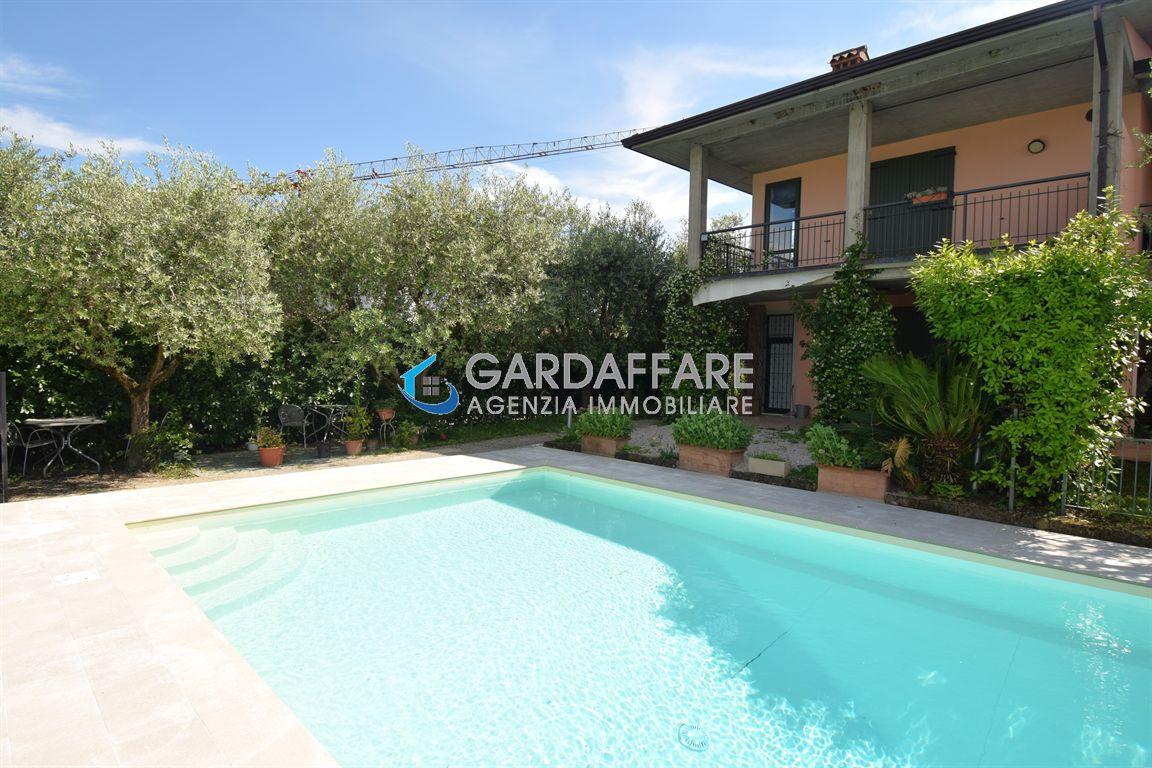In rinomata zona residenziale, comoda al paese e a poche centinaia di metri dal lago: PORZIONE DI BIFAMILIARE CON GIARDINO PRIVATO E NUOVISSIMA PISCINA in condivisione con l’unità confinante.