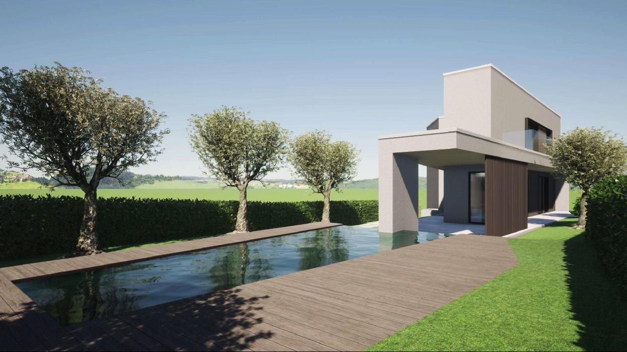 In ottima zona residenziale, vicino ai servizi di Colombare e anche alla passeggiata lungolago, siamo lieti di proporvi in vendita una villa singola con piscina e giardino privato. La nuova costruzione avrà un design ultra moderno, studiato per unire il confort della vita quotidiana con la vacanza sul lago. La proprietà si svilupperà su un lotto di 750 mq con vista aperta e sarà distribuita su tre piani. L'abitazione sarà composta al piano terra da ampio soggiorno con cucina a vista, bagno di servizio ampio portico che collega la casa alla piscina privata. Attraverso una scala interna si arriverà al primo e ultimo piano dove saranno realizzate tre camere e due bagni. La camera matrimoniale avrà un bagno privato e uno sfogo su un apio balcone. Le altre due camere saranno singole con un' altro bagno dedicato. Nell piano interrato sarà realizzata una taverna un locale tecnico una lavanderia e il quarto bagno. Completerà la villa un garage doppio e un posto auto privato adiacente allo scivolo privato.