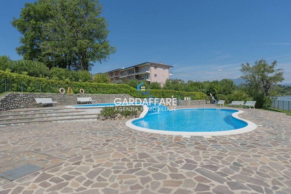 APPARTAMENTO BILOCALE VISTA LAGO AL PIANO TERRA RISTRUTTURATO FINEMENTE all'interno di rinomato villaggio con 10.000mq di parco condominiale, piscina e ACCESSO DIRETTO AL LAGO.
