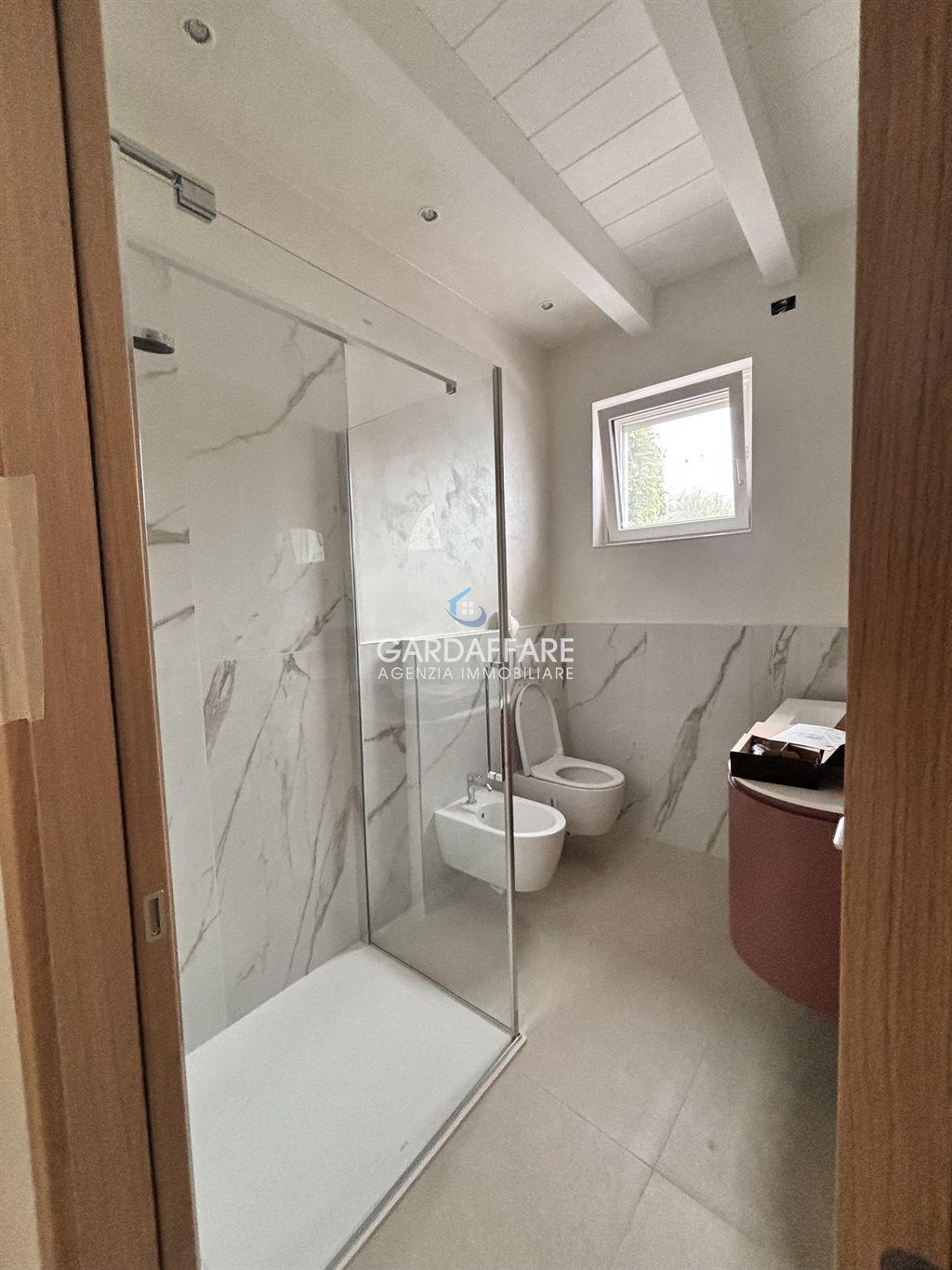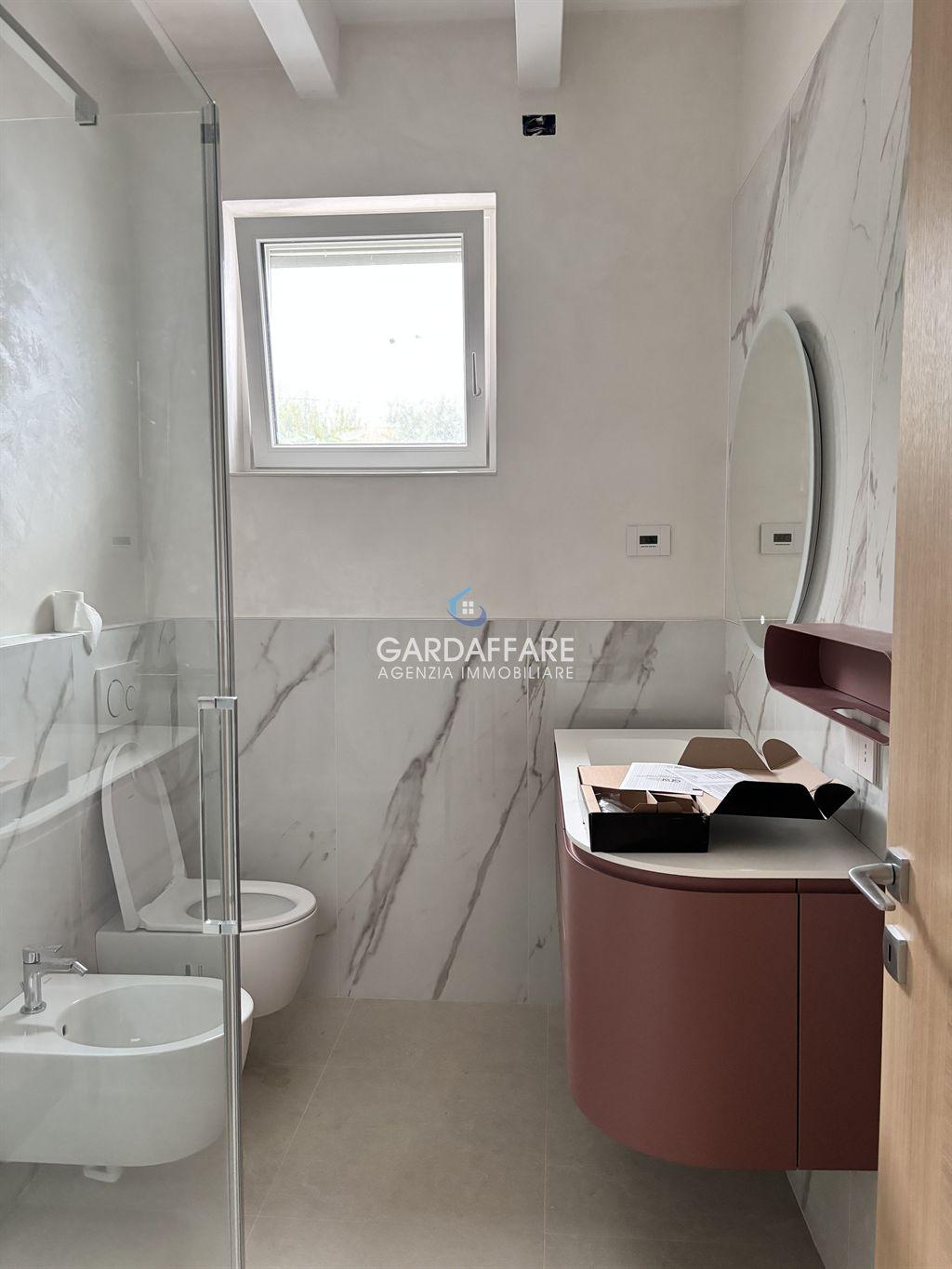In contesto di una nuova corte signorile proponiamo nuovo trilocale\attico al piano primo senza ascensore, terrazzo di 8,5mq, ampia cantina e un posto auto coperto. La proprietà è composta da soggiorno con cucina a vista, disimpegno, camera matrimoniale con bagno privato, bagno di servizio e cameretta. Le finiture sono in gres porcellanato e rivestimenti di prima scelta, sanitario sospesi, porta blindata, infissi triplo vetro, riscaldamento a pavimento, predisposizione della aria condizionata. Impianto fotovoltaico privato.