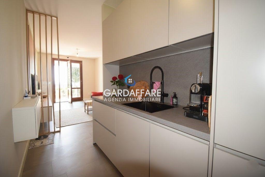 L’appartamento è composto da zona giorno con angolo cottura e accesso diretto alla spaziosa loggia VISTA LAGO e zona notte composta da camera matrimoniale con accesso diretto alla terrazza, seconda camera e bagno finestrato.