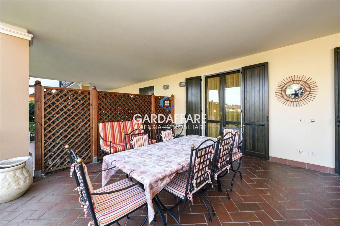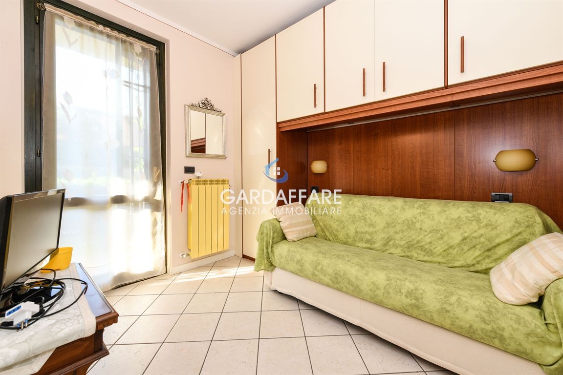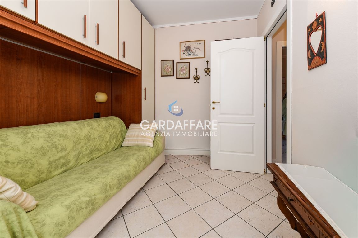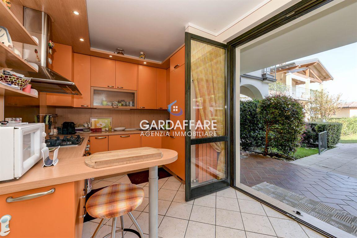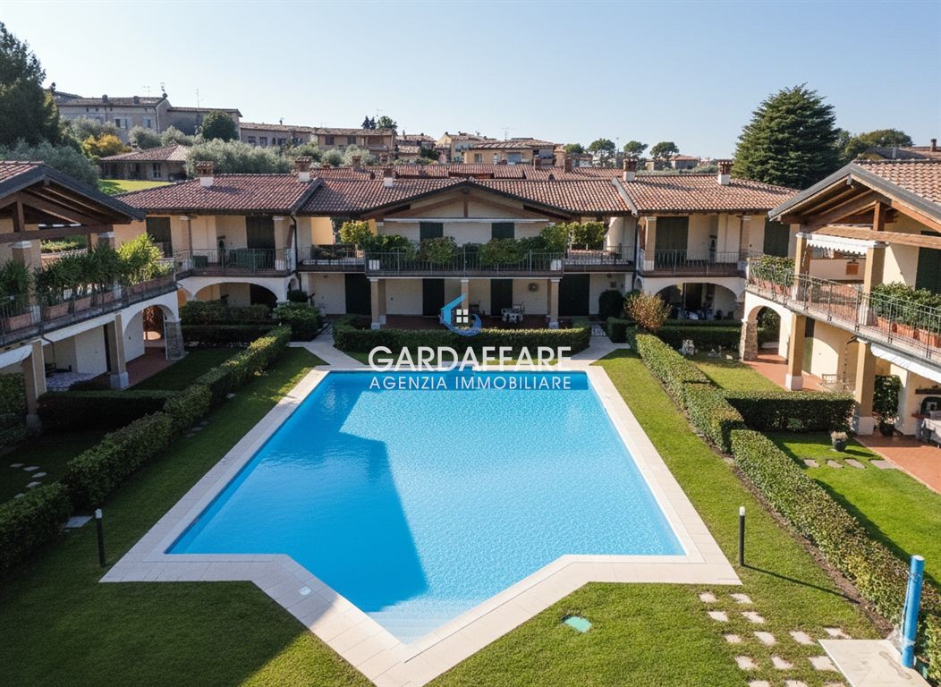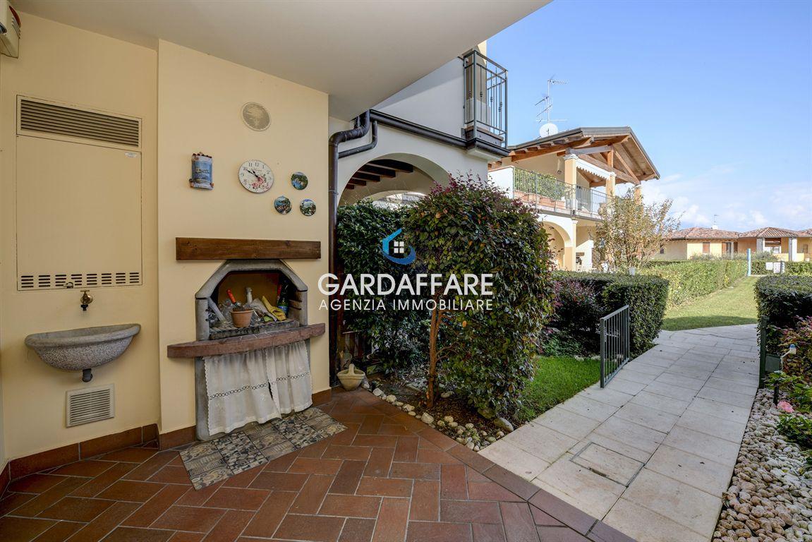 In ottima posizione comoda al lago e al centro, all'interno di esclusivo complesso residenziale di sole 13 unità con bellissima piscina, proponiamo in vendita AMPIO APPARTAMENTO TRILOCALE AL PIANO TERRA CON GIARDINO PRIVATO FRONTE E RETRO E AMPIO PORTICO ESCLUSIVO. L'appartamento è composto da soggiorno con zona cottura, due spaziose camere e bagno. Ampio garage di 23 mq. nell'interrato del complesso e due posti auto di proprietà interni al residence.