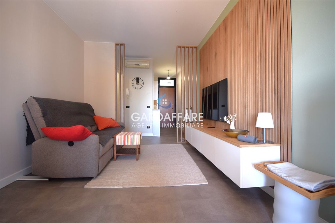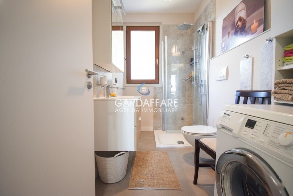 L’appartamento è composto da zona giorno con angolo cottura e accesso diretto alla spaziosa loggia VISTA LAGO e zona notte composta da camera matrimoniale con accesso diretto alla terrazza, seconda camera e bagno finestrato.